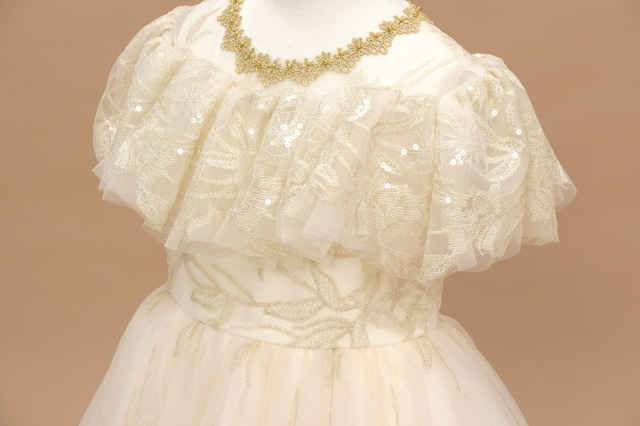 7歳さん用衣装の胸元には、ゴールドの刺繍が入っており、上品さをプラスしてくれます