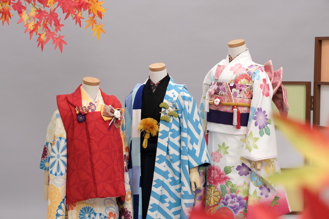 右側7歳着物はモダンのご紹介の時の着物と同じお着物です☆