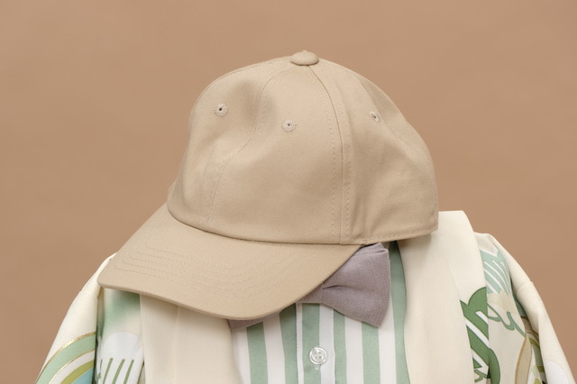 ベージュのキャップにストライプシャツが最高にCOOL!