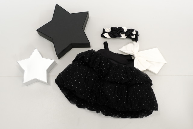 この衣装に合わせて星などを使ったモノトーンの雰囲気の背景で撮影できるようになりました!