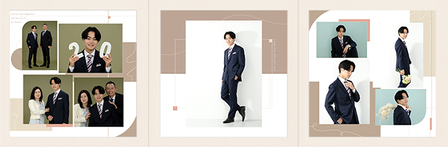 商品は、アルバム1冊などの単品商品や、データと商品がセットになったお得なセット商品があり、画像データとデザイン台紙(3面)がセットになった成人式限定セットもご用意しております