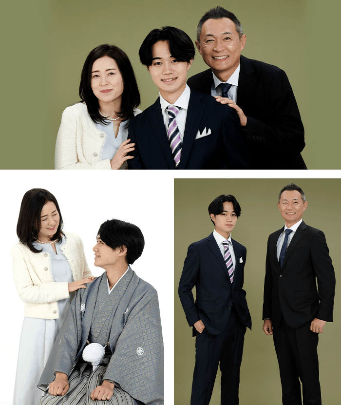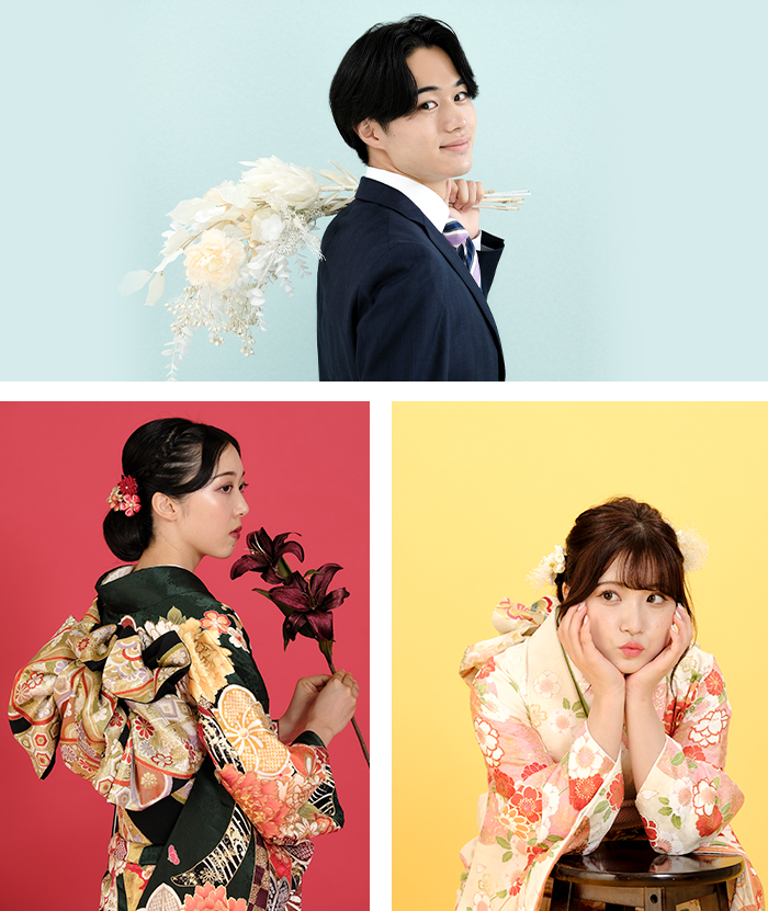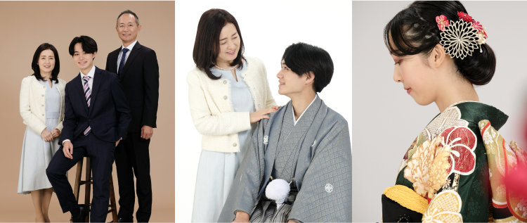 - ※ご来店時の服装での撮影となります。着付け、ヘアメイク等は済ませてからご来店ください。