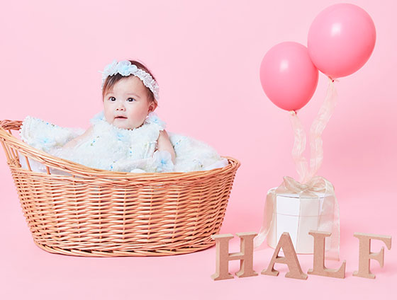 生後6カ月目の誕生祝い、ハーフバースデー。赤ちゃんの健やかな成長を祝って、お家の中をハーフバースデーにちなんだ飾り付けでにぎやかにお祝いしましょう!6カ月目の赤ちゃんは、おすわりやハイハイができるようになり、あやすとよく笑う可愛いさかり!カメラを構えて、とっておきの1枚を記念に残しましょう。