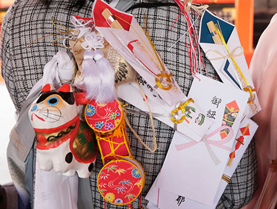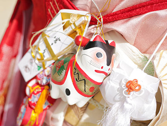 お宮参りでは「縁起が良い小物を、着物(産着・初着)に付けて参拝する」という風習があります。お宮参りを控えたご家族の中には「小物を付ける風習がある地域に住んでいる」「小物も用意して祝ってあげたい」などと考えている方もいるかもしれません。